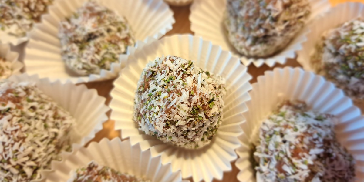 Die Energiebällchen sind eine gesunde, feine Nascherei und sie wirken hervorragend gegen Frust jeder Art – vor allem in Verbindung mit einem Spaziergang im Grünen!